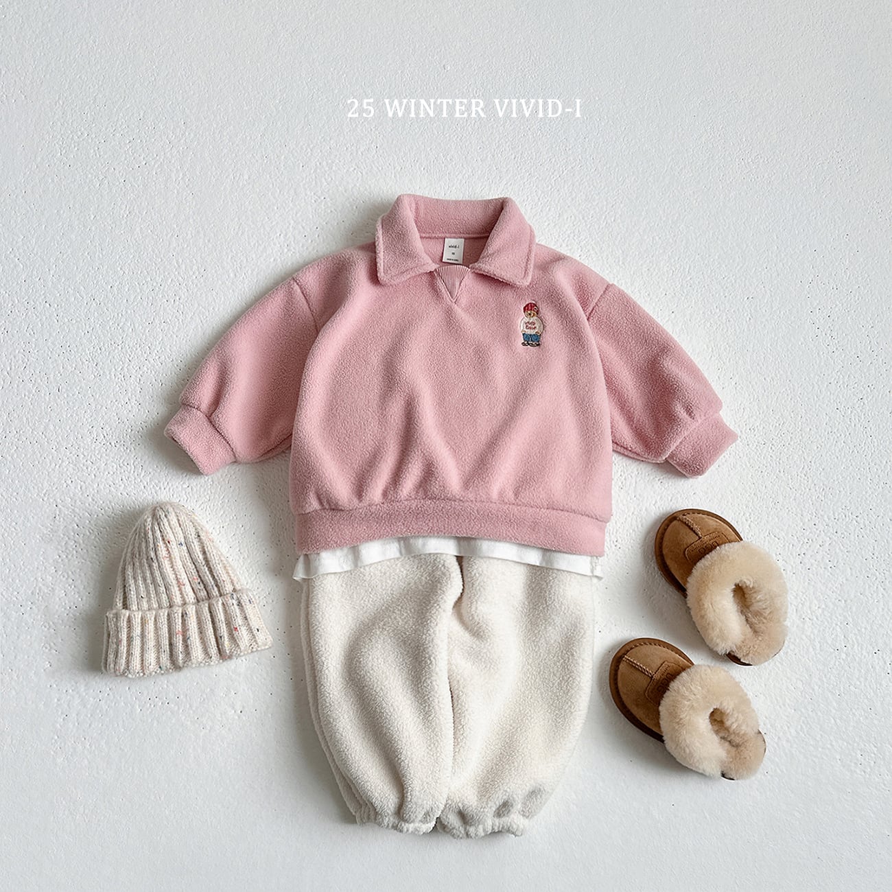 soft fleece collar bear top and bottom【VIVID】※12月下旬〜1月上旬発送予定