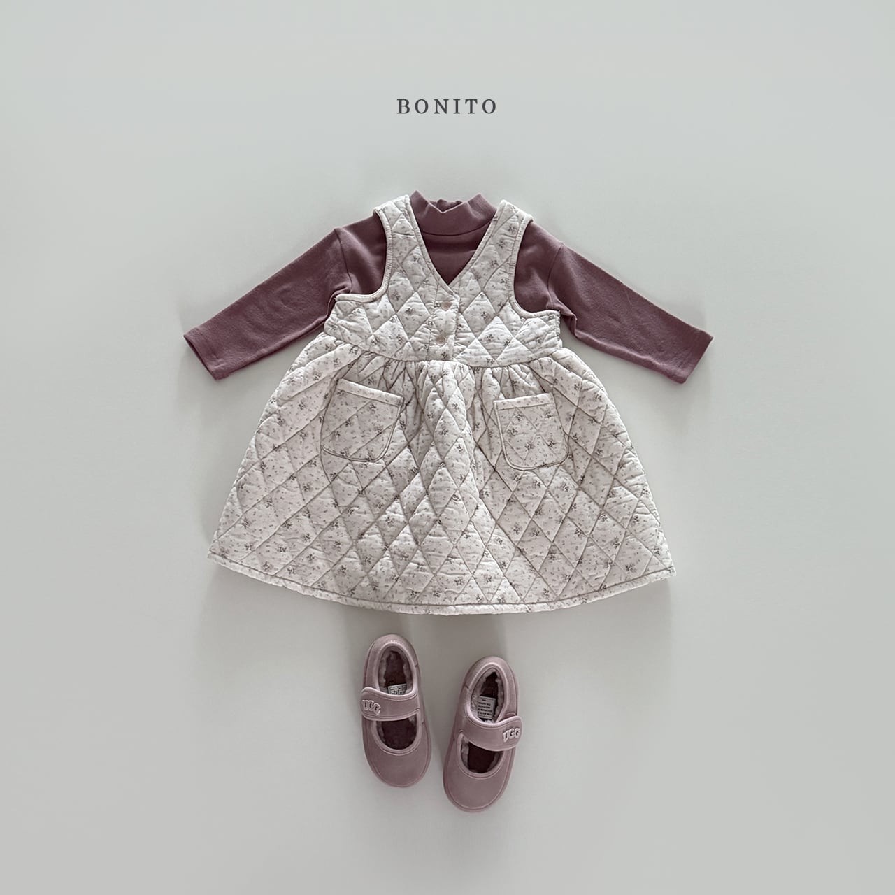small flower quilted one-piece【BONITO】※12月下旬〜1月上旬発送予定