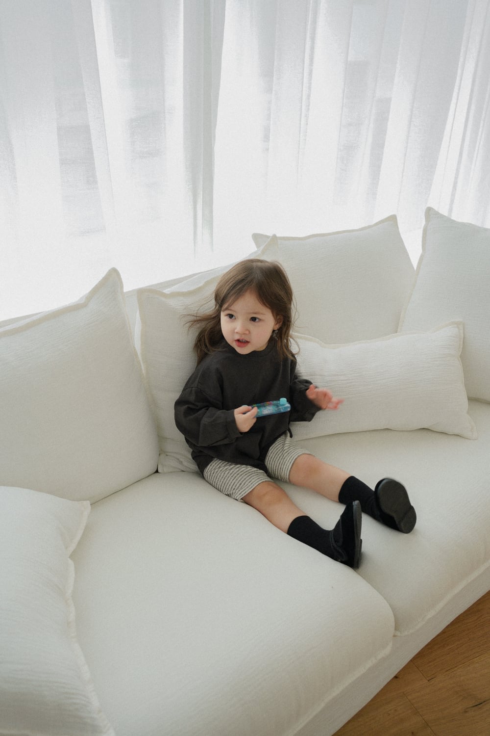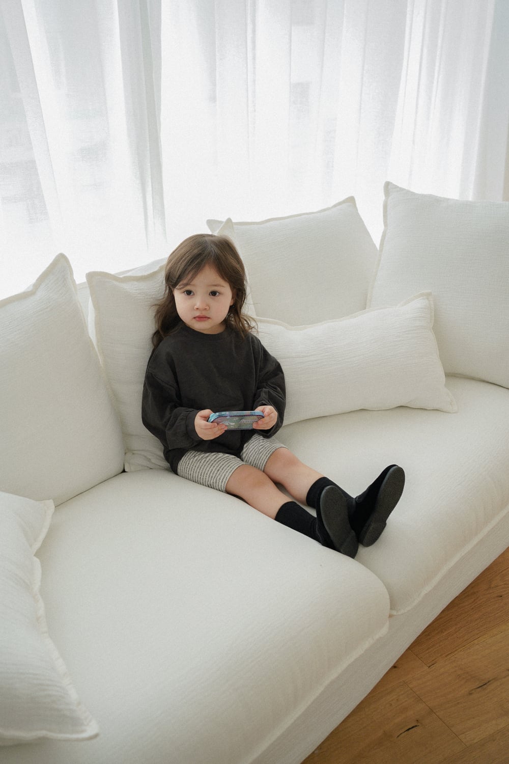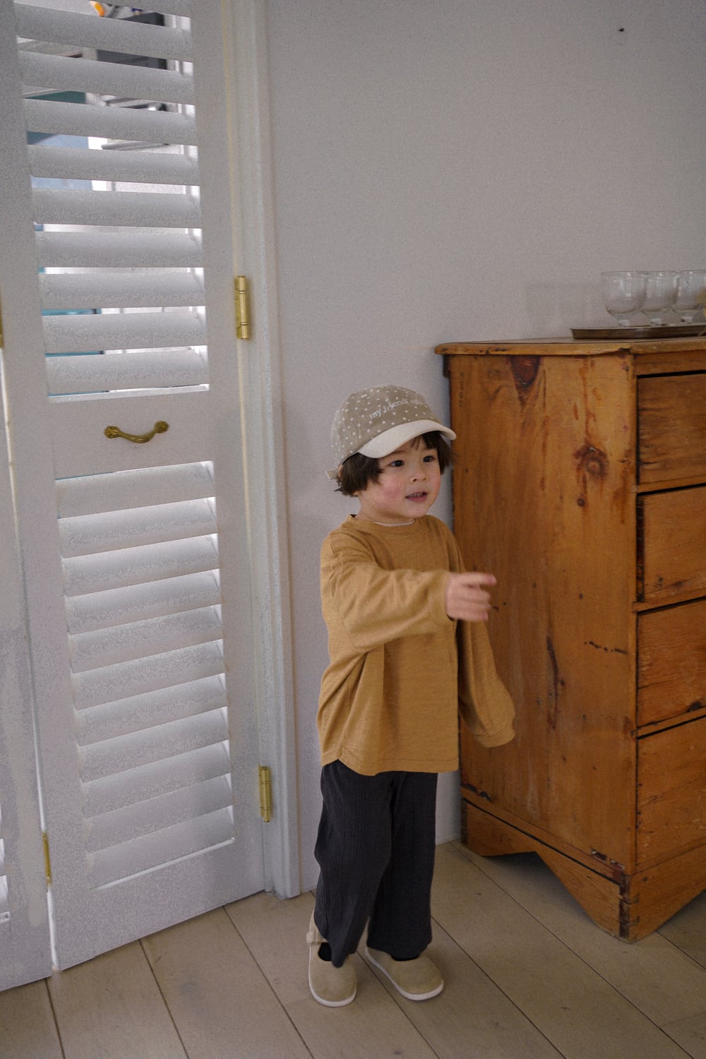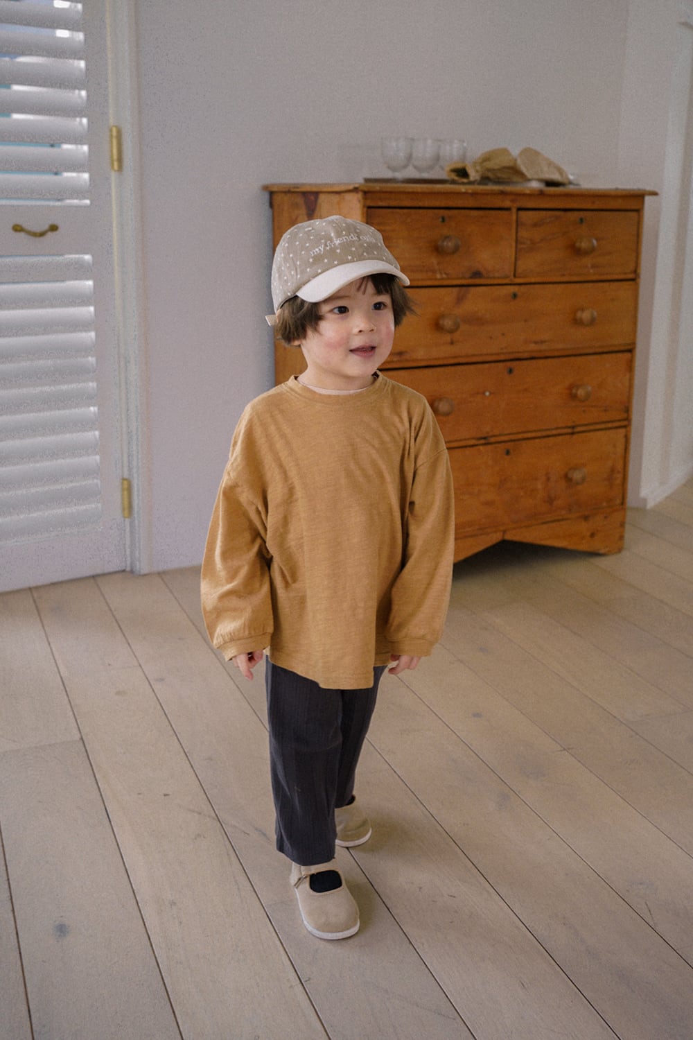 大きめをお選びいただいても極端に大きすぎることはなく、成長に合わせて長くご着用いただけます。