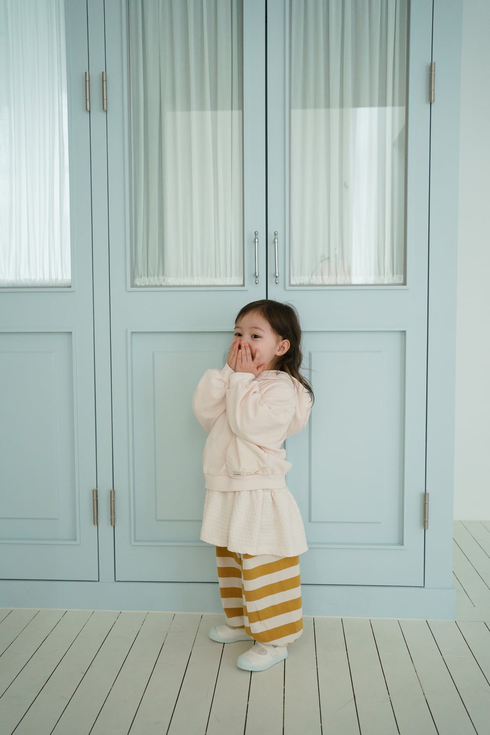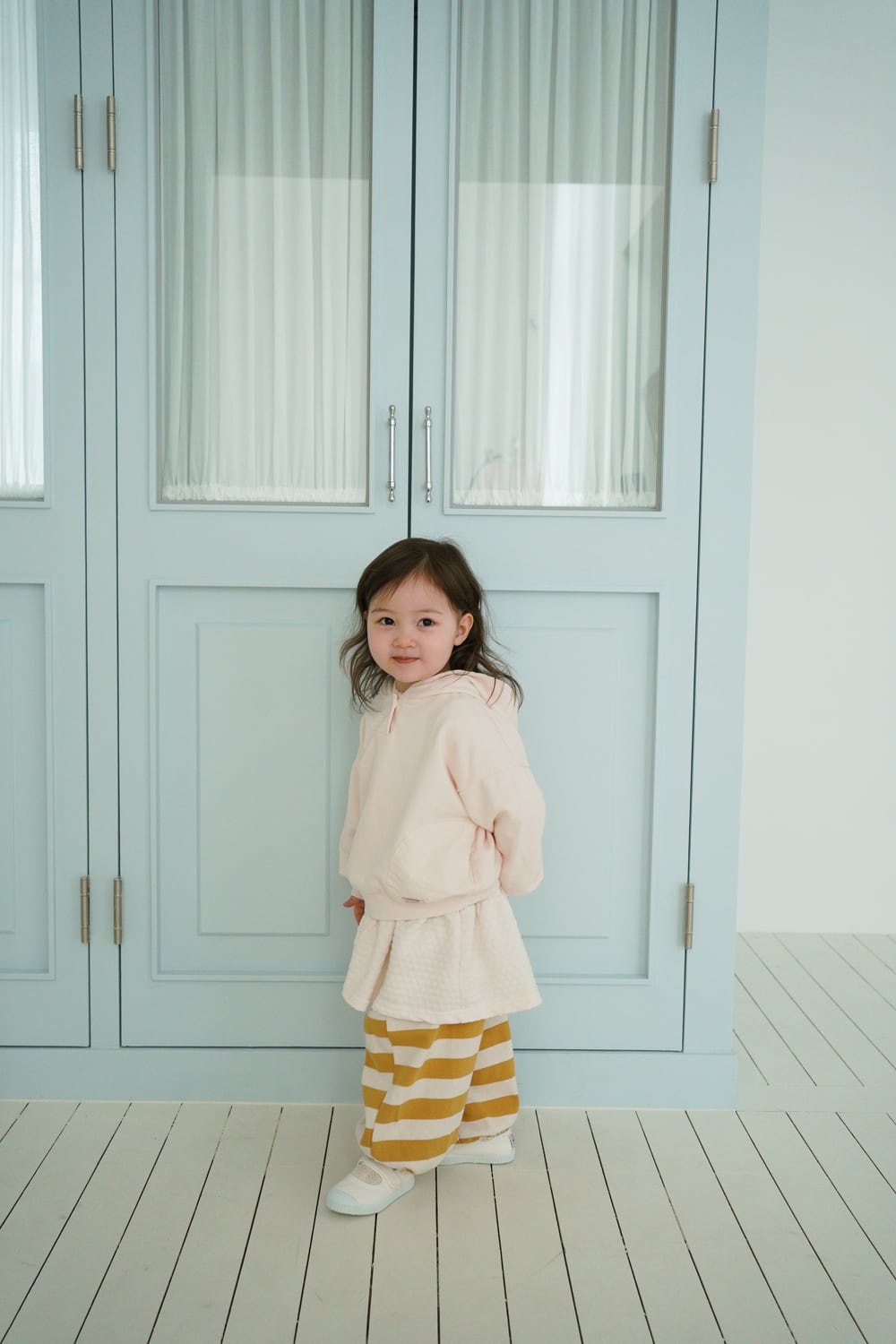 大きめをお選びいただいても極端に大きすぎることはなく、成長に合わせて長くご着用いただけます。