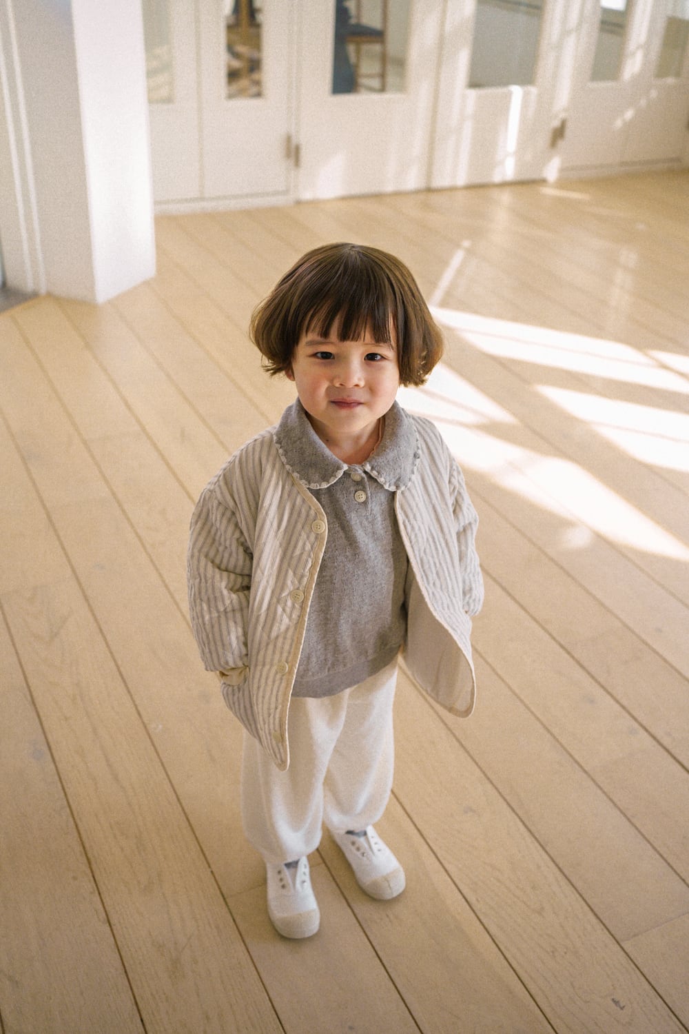 大きめをお選びいただいても極端に大きすぎることはなく、成長に合わせて長くご着用いただけます。