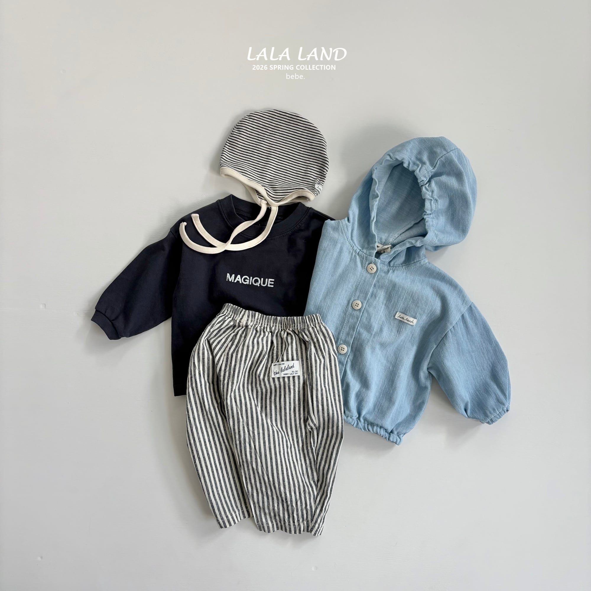 bebe denim shirring hood【lalaland】※3月中旬発送予定