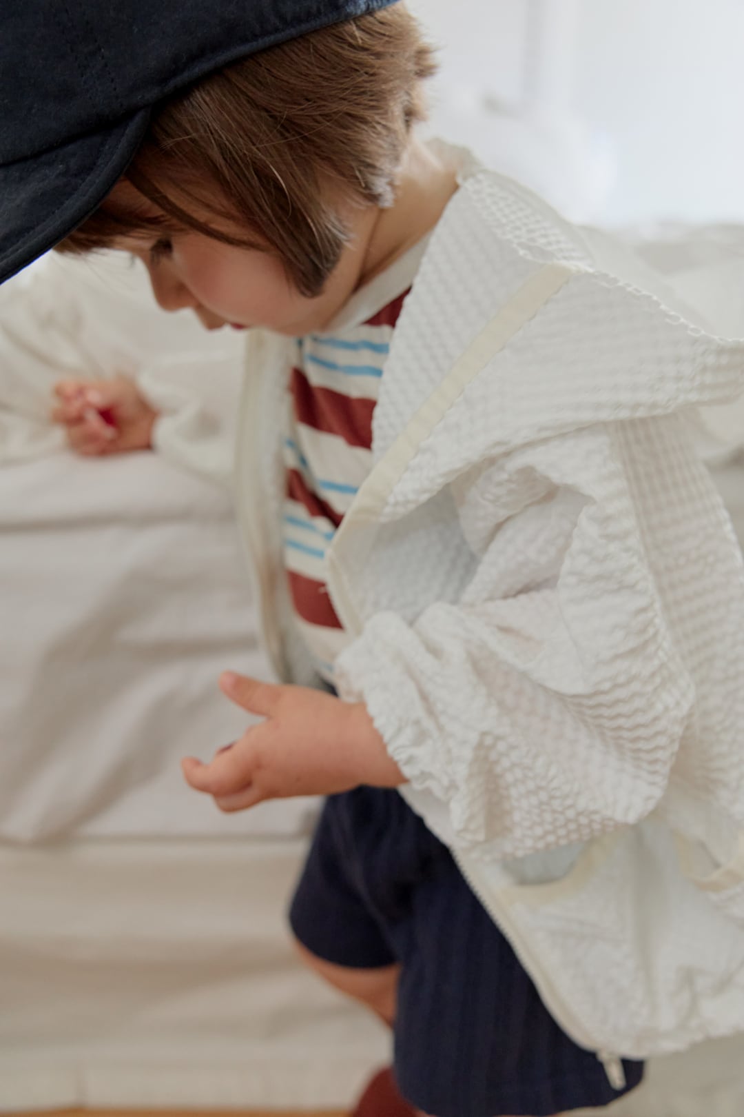 大きめをお選びいただいても極端に大きすぎることはなく、成長に合わせて長くご着用いただけます。